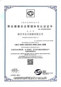 當前位置 : 主頁 > 關于我們 > 榮譽資質 -北方濾器職業(yè)健康管理體系認證證書中